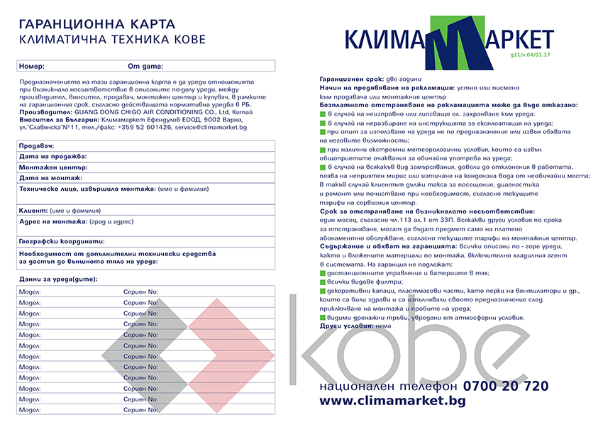 Капацитет Охлаждане: Номинал (Мин - Макс)